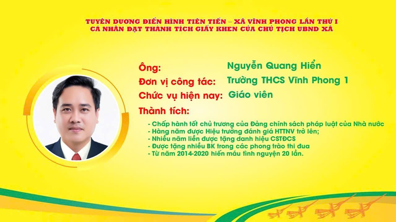GIÁO VIÊN TRƯỜNG THCS VĨNH PHONG 1 ĐƯỢC TUYÊN DƯƠNG ĐIỂN HÌNH TIÊN TIẾN XÃ VĨNH PHONG LẦN THỨ I