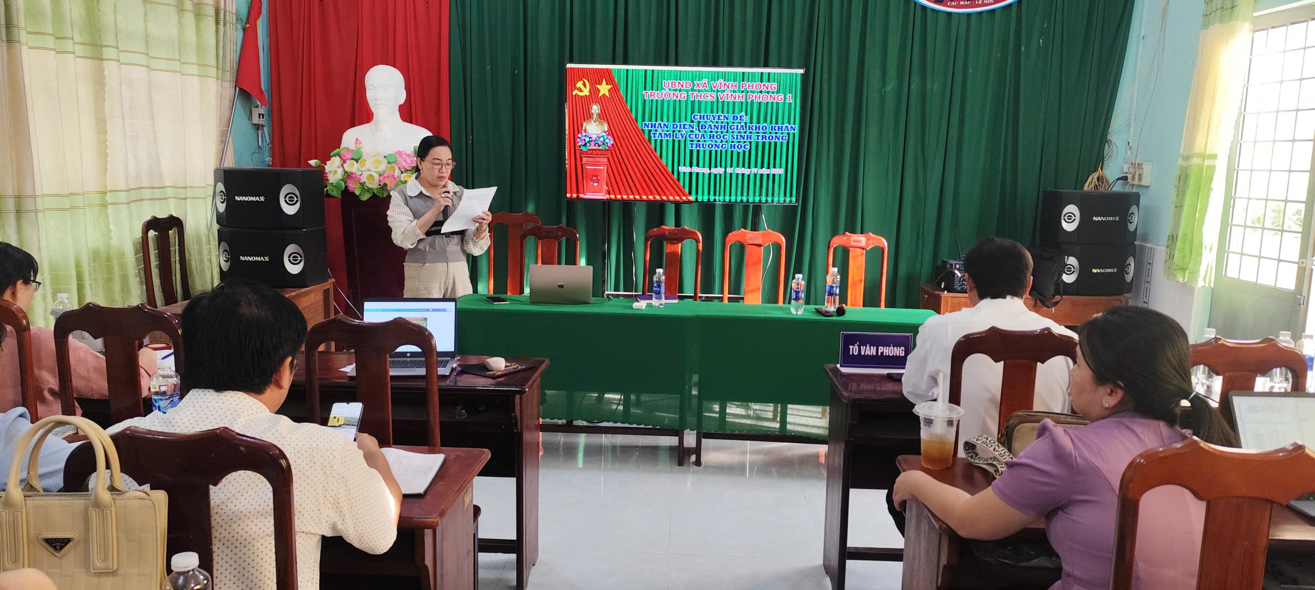 Chiều ngày 14/11/2025, Trường THCS Vĩnh Phong 1 tổ chức Hội thảo chuyên đề: Nhận diện, đánh giá khó khăn tâm lý của học sinh trong trường học. Nội dung: Triển khai tài liệu Nhận diện, đánh giá khó khăn tâm lý của học sinh trong trường học, các văn bản có liên quan và các bài tham luận.