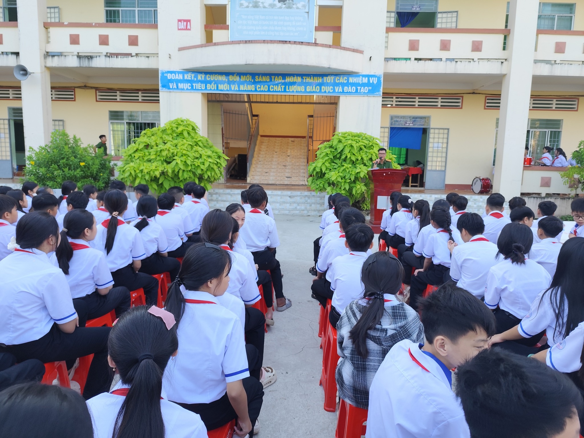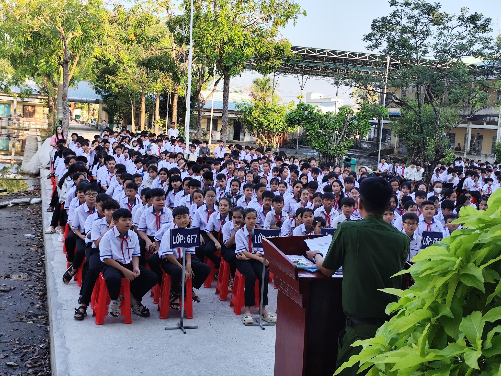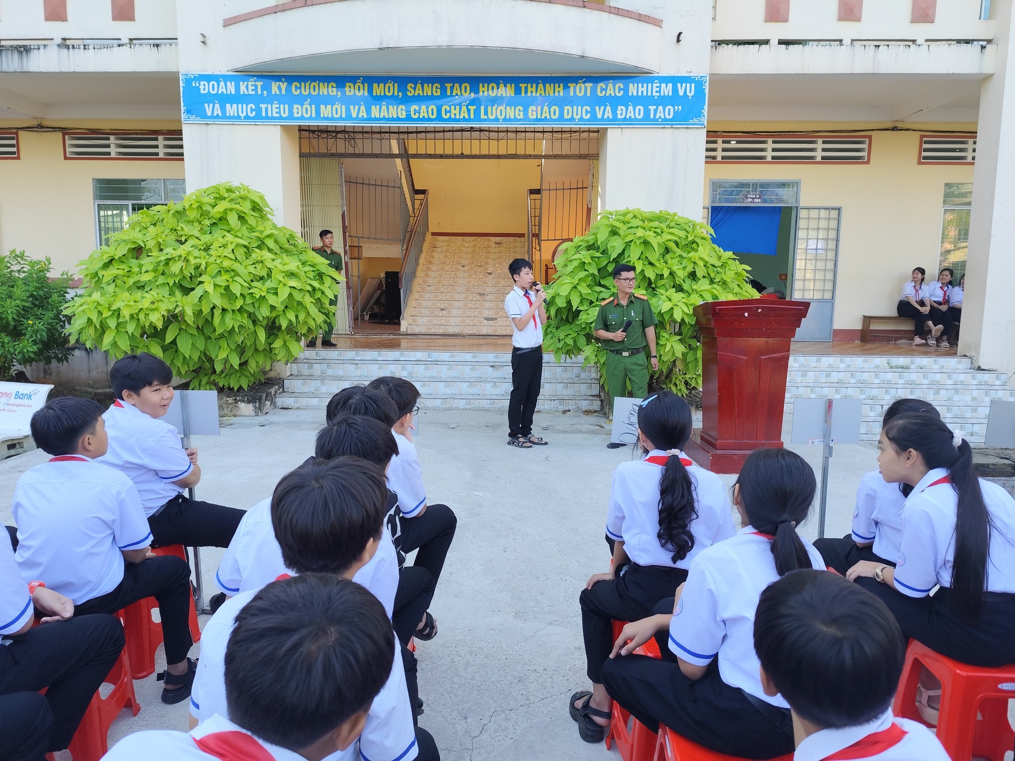 Nhằm góp phần nâng cao nhận thức cho các em học sinh trong việc phòng ngừa, tự bảo vệ mình trước các loại tội phạm và tệ nạn xã hội trong tình hình mới; phòng, chống bạo lực học đường và nâng cao ý thức khi tham gia giao thông, Trường THCS Vĩnh Phong 1 phối hợp với Công an xã Vĩnh Phong, tổ chức buổi tuyên truyền với chủ đề: “Nâng cao thức về phòng, chống tệ nạn xã hội; phòng chống bạo lực học đường và an toàn giao thông trong lứa tuổi học sinh” trong buổi sinh hoạt dưới cờ tuần 13.