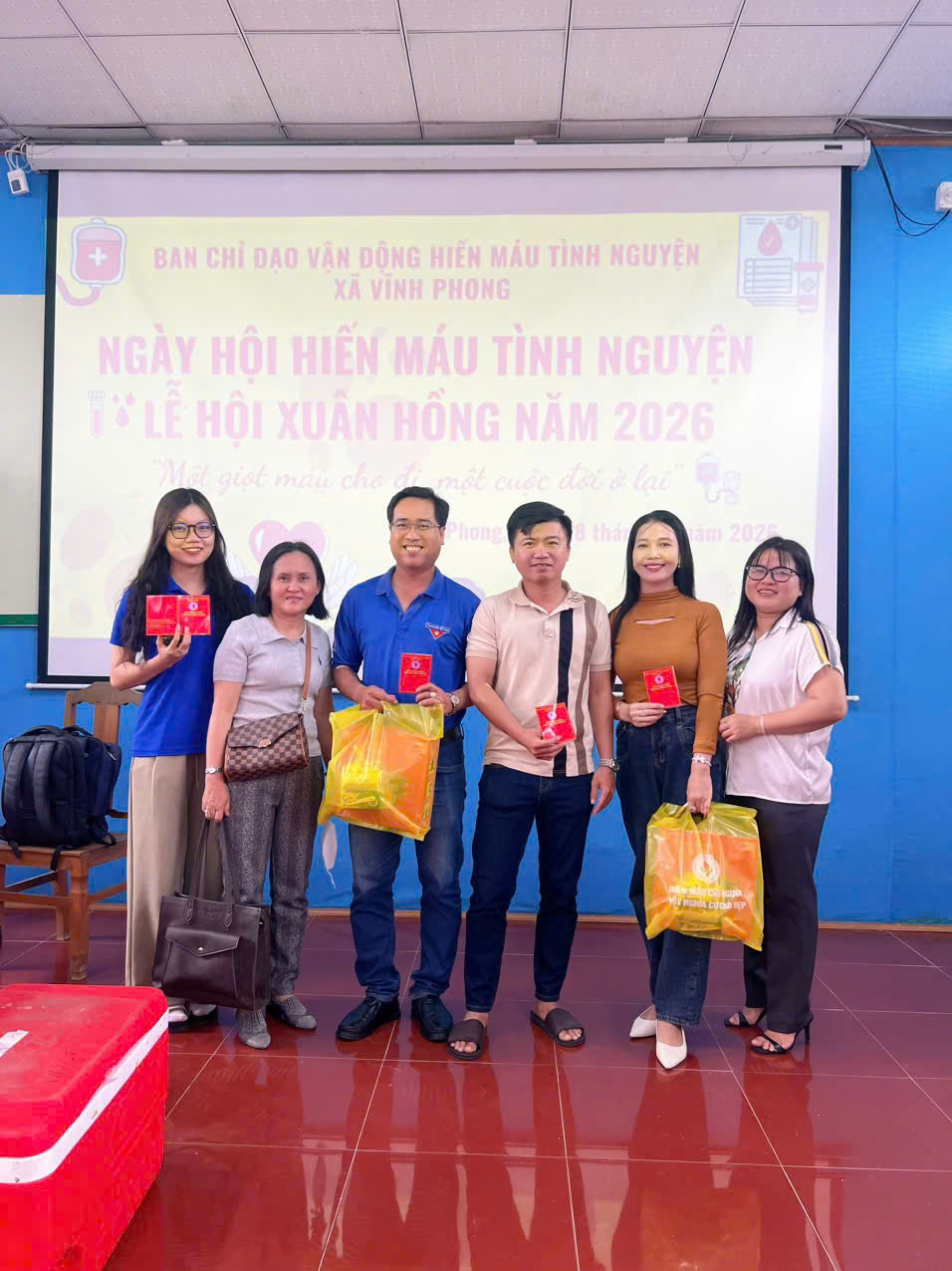 Thực hiện kế hoạch của BCĐ hiến máu tình nguyện xã Vĩnh Phong, về việc vận động hiến máu tình nguyện đợt I năm 2026 ,ngày 28/02/202 Trường THCS Vĩnh Phong 1 tham gia hiến 5 đơn vị máu gồm các thầy cô: Nguyễn Quang Hiển, Trịnh Thị Thu Loan, Lý Kim Ba, Hoàng Văn Thương, Lê Việt Hiền