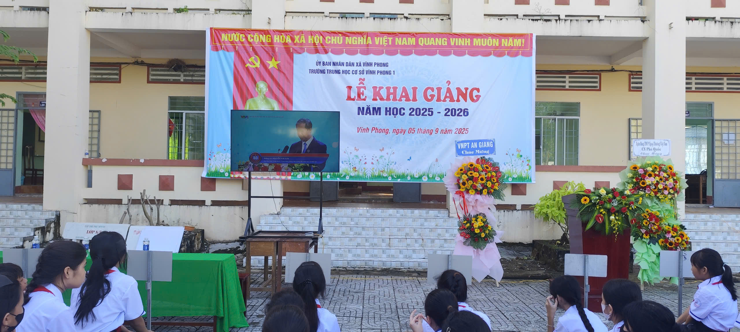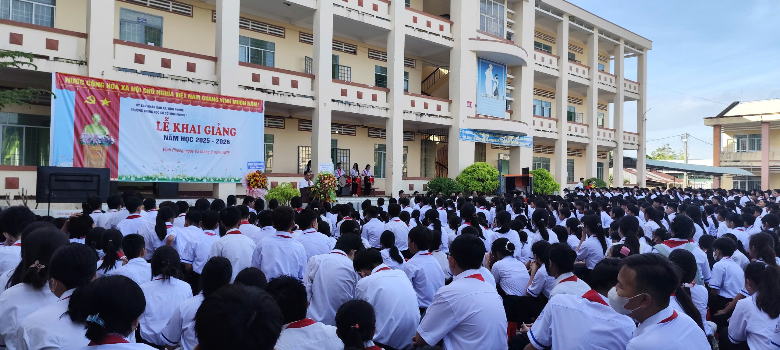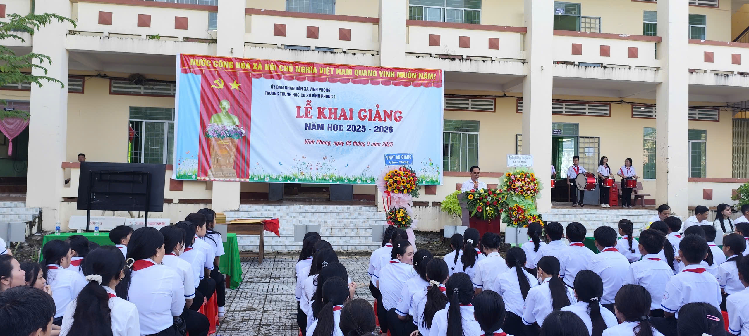 Sáng ngày 05 tháng 9 năm 2025, cùng với 1,7 triệu giáo viên và 30 triệu học sinh trên cả nước, Thầy và trò Trường THCS VĨNH PHONG 1 đã long trọng tổ chức Lễ khai giảng năm học 2025-2026.