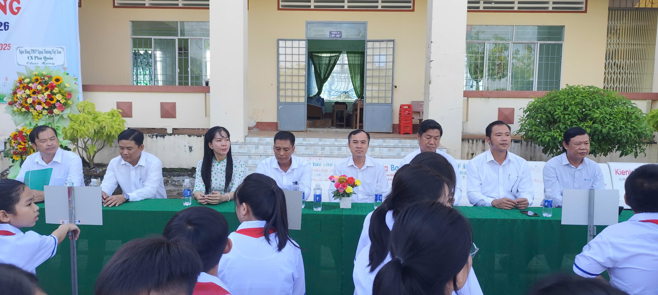 Đến tham dự lễ khai giảng với thầy và trò nhà trường có Bà Trần Sông Hồng, Uỷ Viên Ban Thường Vụ Đảng ủy, Phó Chủ tịch UBND xã Vĩnh Phong, Ông Trần Văn Quang, Đảng ủy viên, Phó Trưởng ban Kinh tế-Ngân sách HĐND xã Vĩnh Phong, Ông Trần Văn Như, Phó Chánh Văn phòng Đảng ủy xã Vĩnh Phong cùng đại diện ban ngành đoàn thể địa phương, Ban lãnh đạo ấp, các bậc phụ huynh học sinh của nhà trường.